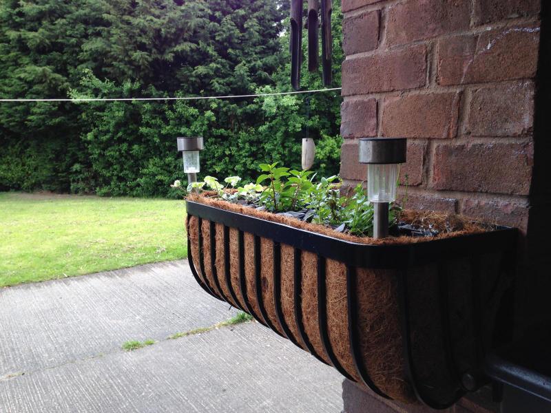 Custom hanging flower baskets for a customer in Broseley.